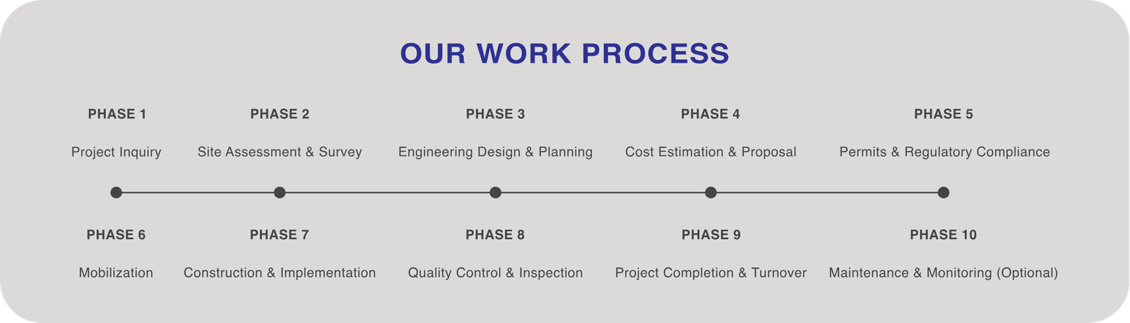 As an ISO-certified company we have an established quality management system that allows us to complete projects with quality, safety, on schedule, and within budget, assuring our clients’ satisfaction.